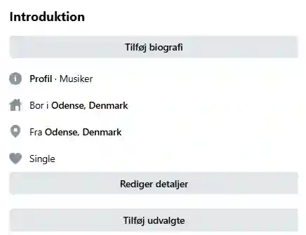 Tryk på tilføj biografi eller rediger biografi og indsæt følgende: